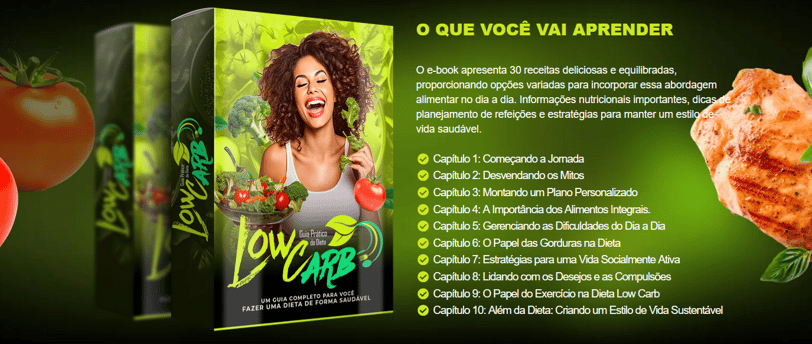 Aqui você irá entender como emagrecer com dieta low carb. Entenda as receitas e como usar elas com esse ebook